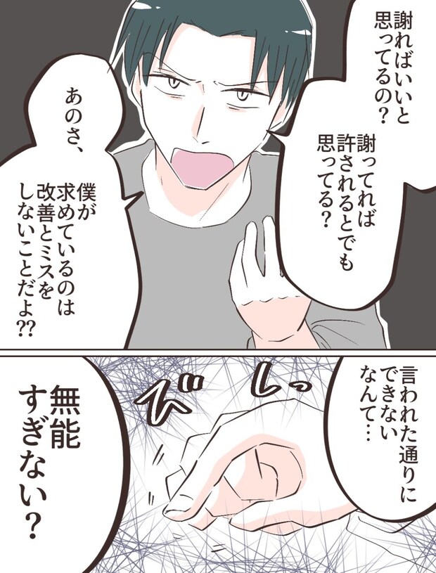 そして、「謝ればいいと思ってるの?謝ってれば許されるとでも思ってる?」「あのさ、僕が求めているのは、改善とミスをしないことだよ??言われた通りにできないなんて・・無能すぎない?」リヒトさんにそう言われ、