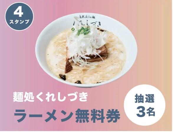 「ラーメン無料券」3名に当たる。長野県ならではの商品も追加準備中なのでお楽しみに。