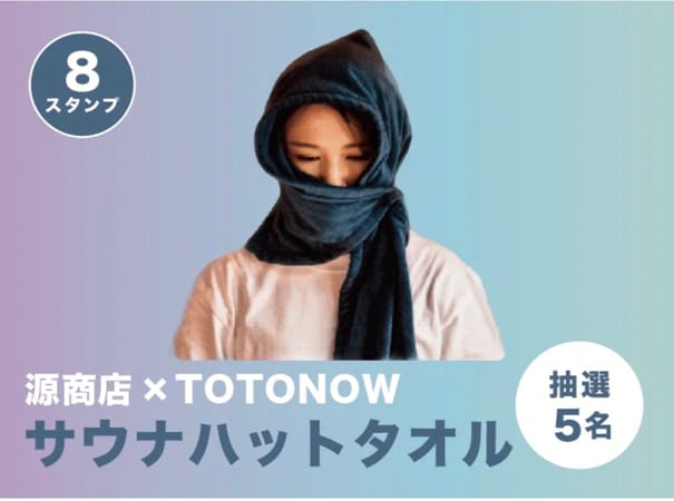 口元もカバーできる源商店「サウナハットタオル[TOTONOWモデル・非売品]」5名が用意されている。