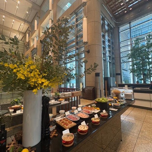 「マンダリン オリエンタル 東京」は、洗練されたラグジュアリーなサービスで名をはせているホテルです。その2階にある「ヴェンタリオ」は、25mにおよぶ吹き抜けで開放的なダイニング。大きな窓から自然光が入って気持ちいいです。
