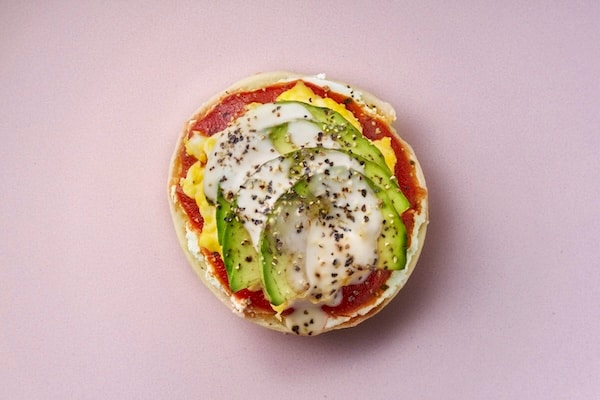 「プレーンベーグル プレーングリークヨーグルト エッグチーズ・アボカド」の食事系のものなど全6種類の中から好きな2種類を1セットとして選べる構成で、価格は1セット1,210円(税込)。