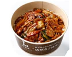 「南京町監修 回鍋肉丼」562円は、ご飯の上に、豆鼓みそ、甜麺醤、八丁みそ等をあわせた調味料で炒めた豚肉・キャベツ・にんじん・小松菜を盛り付けた一品。