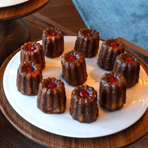 3.うれしいトロリーサービスも。いちごのおいしさがぎゅっと詰まったカヌレは食べ応えあり