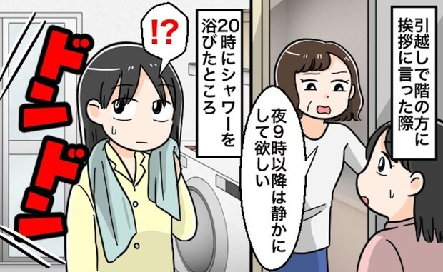 前子供たちを先に寝かせ、20時にシャワーを私が浴びたところ、ドンドンドンドンとならされ、音が響くのは申し訳ないのですが、流石にそこまでされると、こちらも生活ができません💦