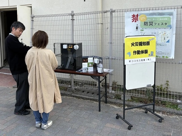 担当者の新コスモス電機リビング営業本部開発営業部の嶋田耕一氏は、「このたびは防災フェスタに出展の機会をいただき、淀川区社会福祉協議会様、淀川区まちづくりセンター様には心より御礼申し上げます。新コスモス電機のブースにお立ち寄りいただいた皆様には、煙流動装置による火災警報器の作動体験を通じて、一酸化炭素検知機能付き火災警報器『プラシオ』の早期検知性能をご理解いただけたことを嬉しく思います。なお、当社の淀川工場は淀川区の津波避難ビルに指定されており、地域の皆さまと連携して今後も防災力の向上に一層努めてまいります」とコメントしている。