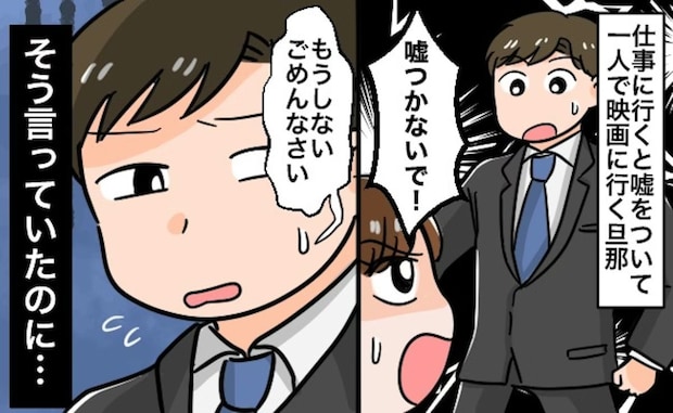 投稿者さんの夫の趣味は映画鑑賞。仕事に行くと嘘をついてまで映画に行くとのこと。この嘘について我慢していたものの、限界が来た投稿者さんは夫に話をし、「もうしない」と謝罪を受けたようです。