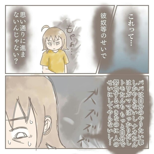 イライラしている原因を夫や子どもたちにしてしまおうとしている自分。そんなことはない、と理性を保とうとする自分。ヨカさんのメンタルは大きく揺さぶられます。