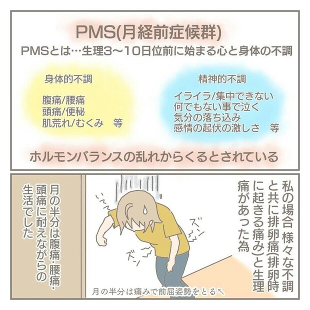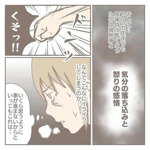 ひどいPMSに悩むヨカさん。痛みだけでなく、産後は気分の落ち込みや怒りの感情などメンタルのほうにも影響がでていました。
