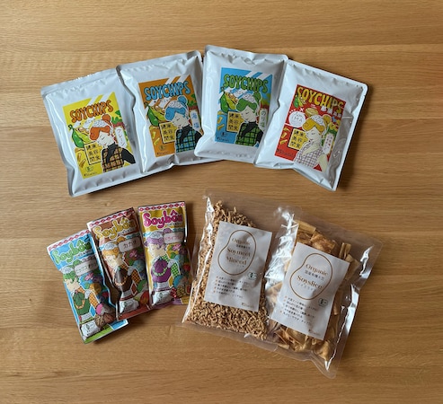 国産有機大豆を使用した揚げていない大豆チップス「SoyChips」4種、国産有機大豆を使用したプロテインバー「Soybôu」3種、さらに湯戻し不要で調理に使える大豆ミート(ミンチタイプおよびスライスタイプ)が含まれる。いずれも国産有機丸大豆100%を原料とし、ライフステージを問わず日常の食に無理なく取り入れられる設計となっている。