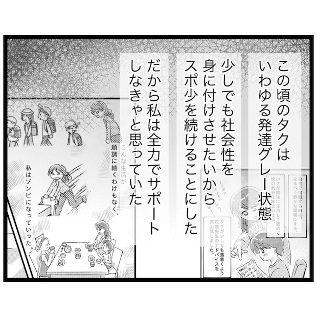 多動気味で集団行動が苦手な息子に、少しでも社会性を身につけてほしい。その想いを胸に、どんなに大変でもスポ少を続けていこうと、もっつんさんは改めて息子を支える覚悟を固めていました。