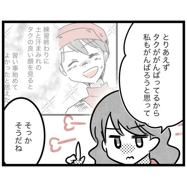 チームに溶け込むことができずに、不安や寂しさを抱えながらも、息子のためにと頑張ってきたもっつんさん。夫はそんなもっつんさんの様子を心配していましたが、最近は上手くやっているように見えているようです。