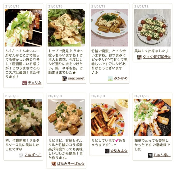 ちくわとタレの相性も良く、「南蛮タレとタルタルがちょうどいい味ですね!」「ちくわがメインのおかずになりました!」「食べごたえあるし、ケチャップ入りのタルタルも旨旨でした」など、つくれぽ(作りましたフォトレポートのこと)でも大好評!