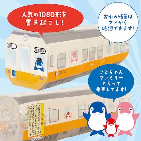 「ことでん水」は、「黄色い電車」として親しまれることでん1080系(奇数側先頭車「1085」)をモデルに制作されたトレインウォーター。「ことでん」と公式キャラクター「ことちゃん」とのWライセンスが実現した商品で、価格はことでんでGO!GO!GO!の555円(税込)。ことちゃんの誕生日である8月8日(金)から香川県内の四国ショップ88、高松空港おさかなショップ、道の駅滝宮、ナカノヤなどで先行発売(販売店は順次拡大)。9月から松浦産業オンラインショップにて全国販売が開始された。また、11月3日(祝・月)に開催のイベント「ことでん電車まつり」瓦町FLAG会場でも販売される。