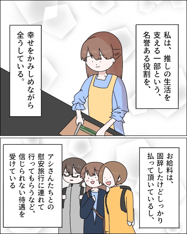 お給料は固辞したけれどしっかり払っていただいているし、アシさんたちとの慰安旅行に連れて行ってもらうなど、信じられない待遇を受けている私。こんな夢のような環境がいまだに信じられずにいました。