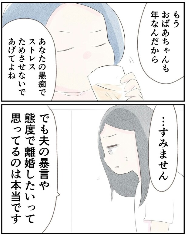 ゆうさんは、どうして祖母との会話を義姉が知っているのか疑問に思います。そんな中でもゆうさんは、義姉にも夫のDVを理由に離婚したいとはっきり言いました。