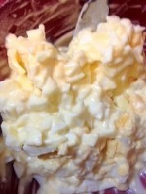 ゆで卵とマヨネーズに、砂糖と塩をひとつまみ。コツはたったこれだけですが、できあがりの味に差が出るのです。