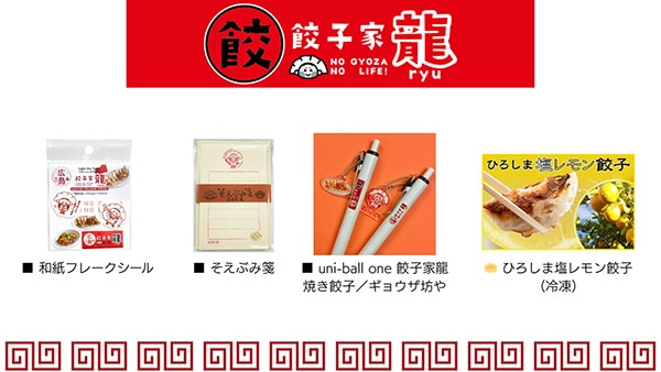 広島県の餃子家龍はひろしま塩レモン餃子(冷凍)ほか、和紙フレークシールやそえぶみ箋などが登場。