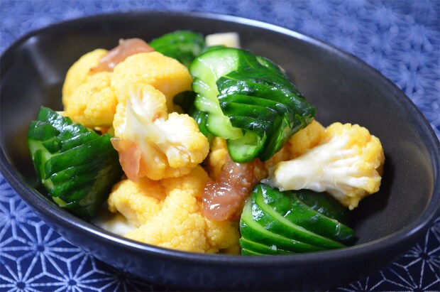 梅でさっぱり爽やか♡「きゅうりとカリフラワーのさしす漬け」