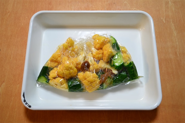 ポリポリが止まらない「きゅうりとカリフラワーのさしす漬け」。みなさんもぜひ、作ってみてくださいね。