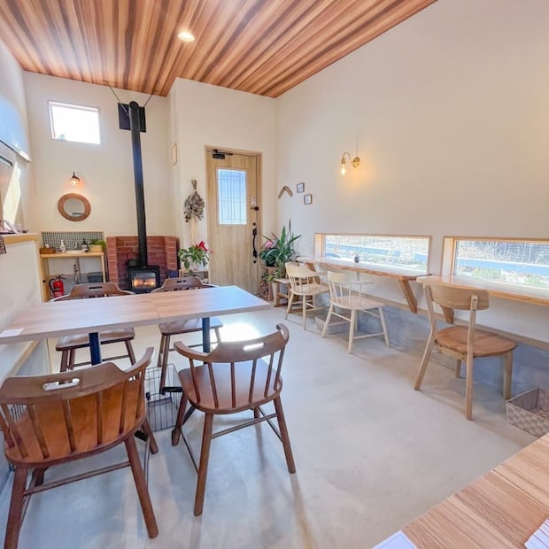 薪ストーブがとてもいい味を醸し出していて、ほっとひと息つけそうな素敵な空間です。