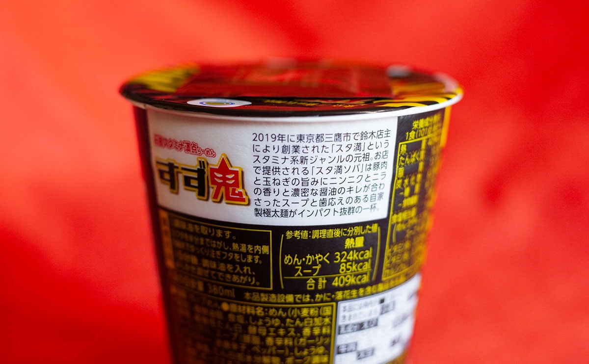 この商品は、2019年の創業以来、根強い人気を誇る東京・三鷹の行列店「元祖スタミナ満点らーめん すず鬼」が監修したもの。ニラとニンニクのパンチがきいた一杯だそうです。