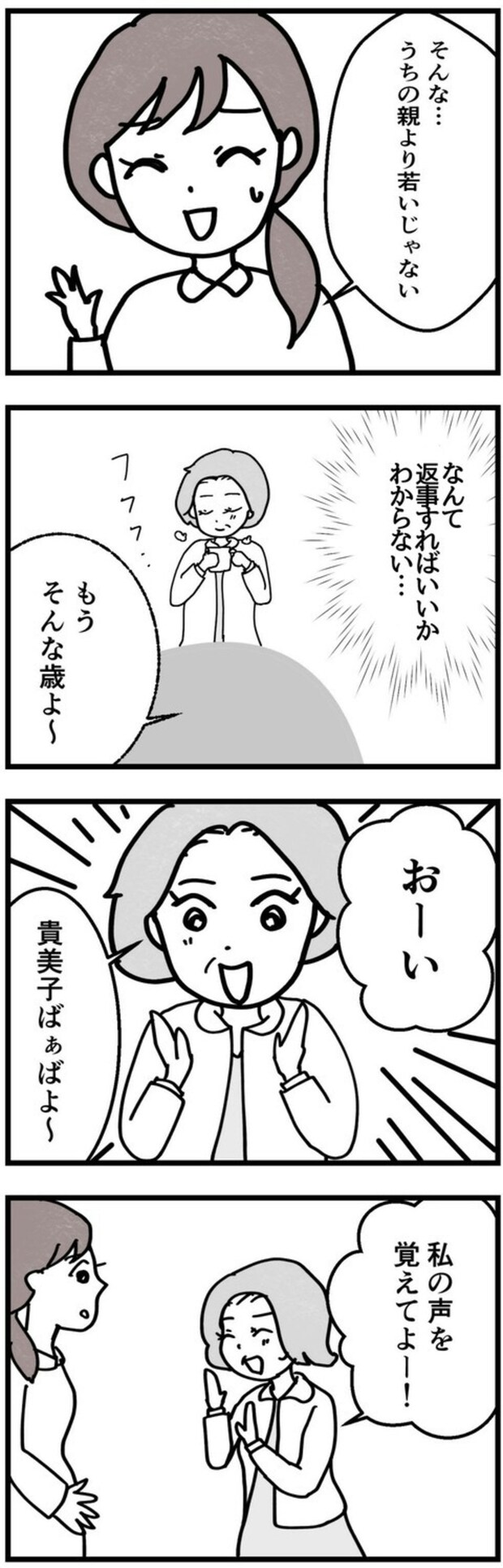 まゆさんの結婚と妊娠を心から祝福してくれた喜美子さん。けれどその口からこぼれたのは、「私もいよいよおばあちゃんかぁ」という、どこか意味深な一言。まゆさんは困惑し返答に困ってしまいました。