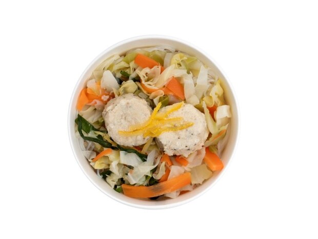 「成城石井自家製 おから鶏団子とキャベツの春雨スープ」(税込647円)は鶏団子が主役の春雨スープです。鶏団子には生姜と大葉をきかせ、おからを入れることで柔らかい食感に。柚子が爽やかに香るスープは冬にぴったり。ちょっと一品足りないな、というときも具沢山スープを添えればごちそうに。