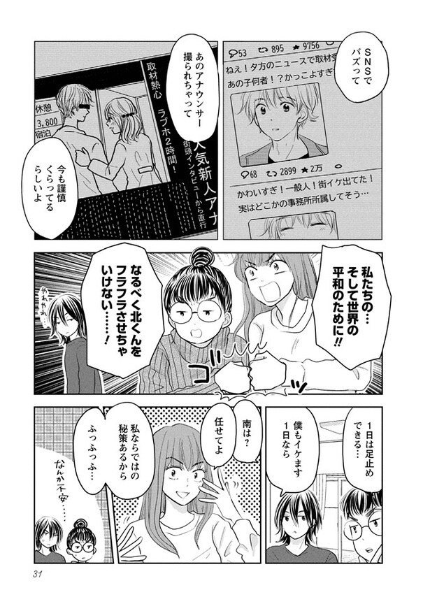 北くんがかわいすぎて手に余るので、3人でシェアすることにした東子、南、西野。男女問わず来る者拒まず、声をかけられるとフラフラとついていく北くんを3人で協力して守れるのか!?