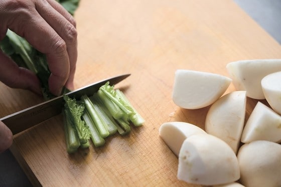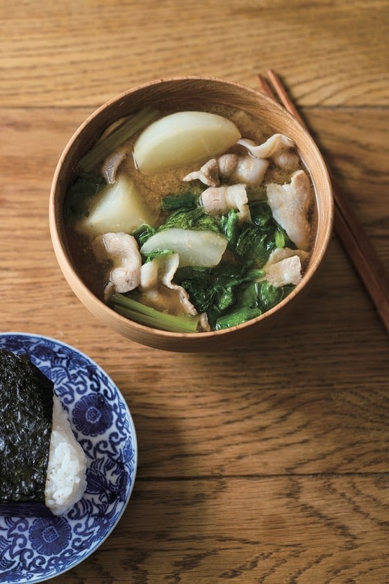 まずご紹介するのは、かぶを使った豚汁です。かぶは火が通りやすくて調理が簡単なうえ、実と葉で二通りの食感と味わいを楽しめるのがいいところです。