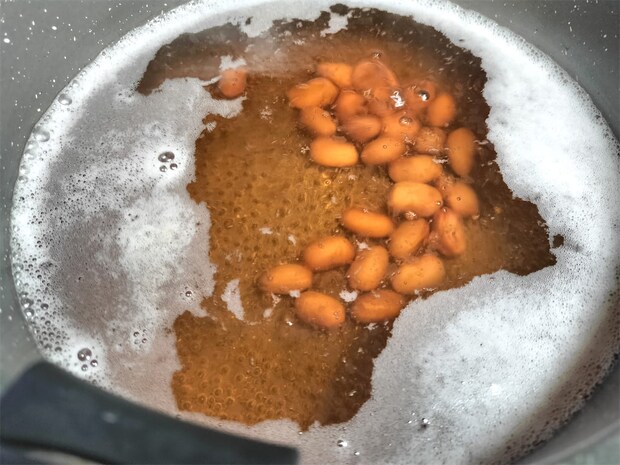 1. 鍋に適量の水(分量外)と金時豆を入れ、中火で15分程度煮ます。