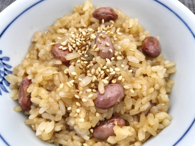 炊き上がってフタを取ってみると、ふわっと熱い蒸気と共にもち米のいい香りが広がりました。すぐに器に移してゴマを振りかけ、さっそく箸で口へと運んでみると、もち米特有のもちっとした食感にしょうゆとみりんの慣れ親しんだ風味がしっかり入っていました。味は決して濃くなく、豆も一緒に食べてみるとホクホクした豆のおいしさがもち米との相性抜群でした。参考にしたレシピ通りに豆を茹でましたが、個人的にはもう少し柔らかくてもいいような気がしました。ここは好みですので、調整してみてください。