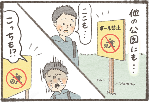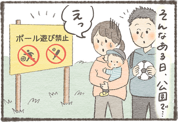 わが子とサッカーで遊ぶのを楽しみにしていたパパさん。息子くんが1歳になりよちよち歩きを始めたので、さっそくボールを持って公園へ!しかし、そこで目にしたのは「ボール遊び禁止」の看板。気軽にボールで遊ぶことができない現実に、パパさんは大きなショックを受けたそうです。 かつては自由に遊べた公園も、今ではボール遊びをするためには広めの公園へ行く必要があるなど、制約が増えているようです。ルールを守りながら、どう楽しく遊ぶかを考えさせられる体験談です。