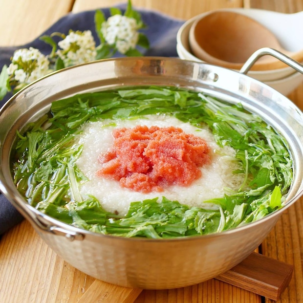 白だしベースに明太子ととろろをあわせた、洋風テイストの鍋アレンジ。明太子のピリッとした辛さがアクセントになり、とろろのまろやかな食感が全体の味をまとめます。鶏肉や白菜などの具材と相性が良く、見た目も華やか。普段の鍋に新しい風味をプラスしたいときのおすすめです。