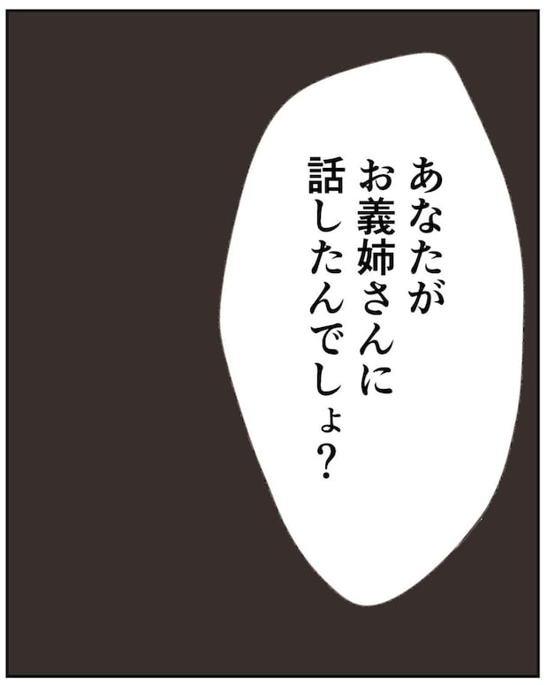 夫が帰宅し、ゆうさんは義姉が来たことを伝えました。そして、祖母に話したことを義姉が知っていたとも言います。これは夫が外出中のできごとだったのですが、ゆうさんは夫しかいないと思い「あなたが話したんでしょ?」と聞いてみたところ…。