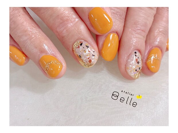マスタードカラーがポイント!大人可愛いニュアンスネイル