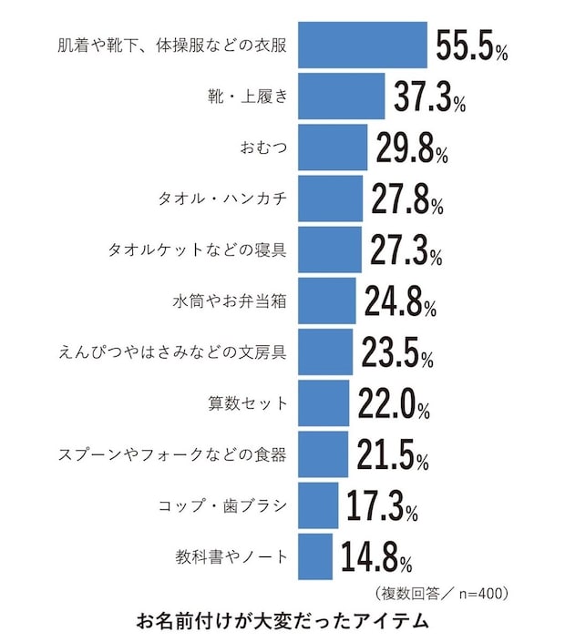 お名前付けの不満、第1位は「お名前付けする持ち物の数が多かった」