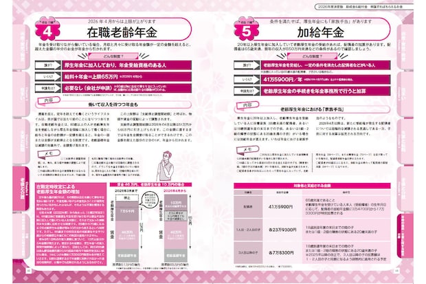 第1章「出産・子育て・教育」では、妊娠中から子どもが大学を卒業するまでの給付金・助成金を網羅。今年の新設は「国民年金第1号被保険者(自営業・フリーランス)の育児期間に係る保険料の免除措置」と「乳児等のための支援給付」(こども誰でも通園制度)です。「出産費用の保険適用拡大・無償化スキーム」「児童手当拡充の通年フル適用」「こども誰でも通園制度」にも注目です。