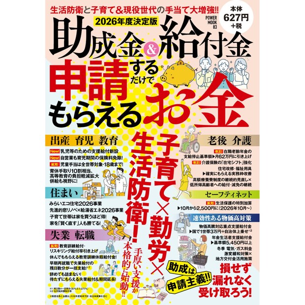 同書は、子育てや教育資金、失業給付やスキルアップ、住宅購入や改築のおトク情報など、2026年度の最新おトク情報を網羅した一冊です。