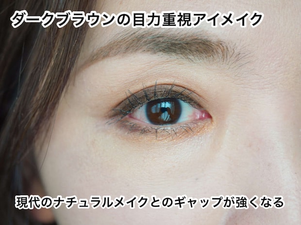 当時のようなダークブラウン系のアイメイクは、現代のメイクとのギャップが強いため、古く感じられる原因に。暗めのアイシャドウパレットを使う場合は、締め色を使わずに仕上げるなどの工夫をおすすめします。