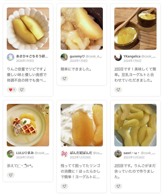 つくれぽ(みんなのつくりましたフォトレポートのこと)でも、「簡単にできておいしかった!家族にも好評です」「このレシピのおかげで、毎年りんごの季節が楽しみです」といった声がたくさん届いています。