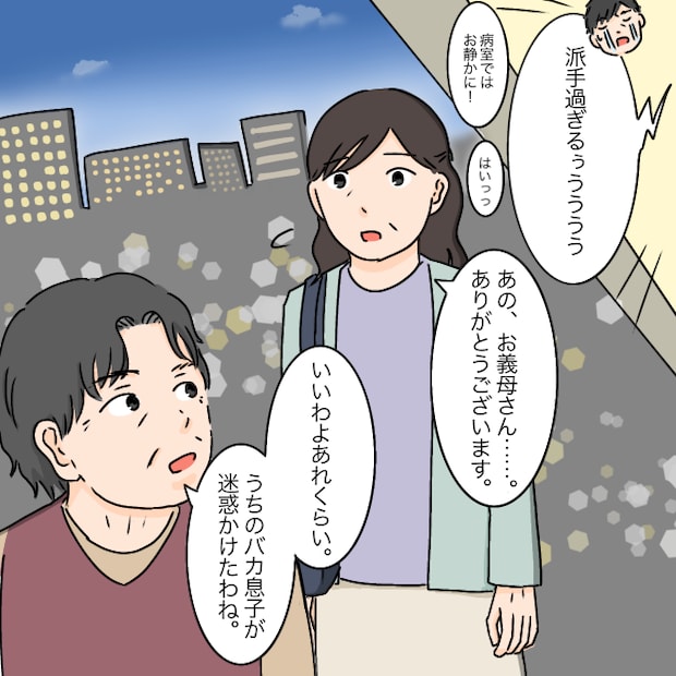 「派手過ぎるぅぅぅぅ~!!」と涙を浮かべるも、そんなことはお構いなしに病院を後にした義祖母。「あの、お義母さん・・。ありがとうございます」義母がお礼を言うと、「いいわよあれくらい。うちのバカ息子が迷惑かけたわね」義祖母がサラリと言いました。