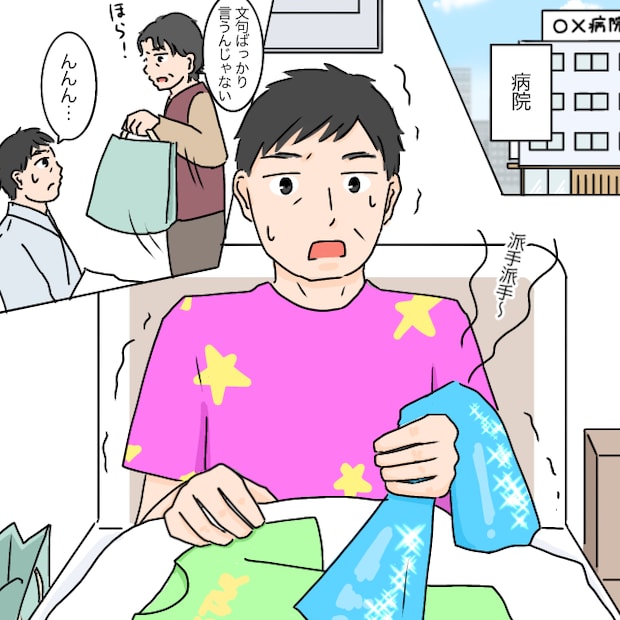 「文句ばっかり言うんじゃない!ほら」と義父に荷物を渡した義祖母。その中身はとっても派手なTシャツやタオルばかり!!着てみたものの、義父はとても戸惑ってしまい・・・