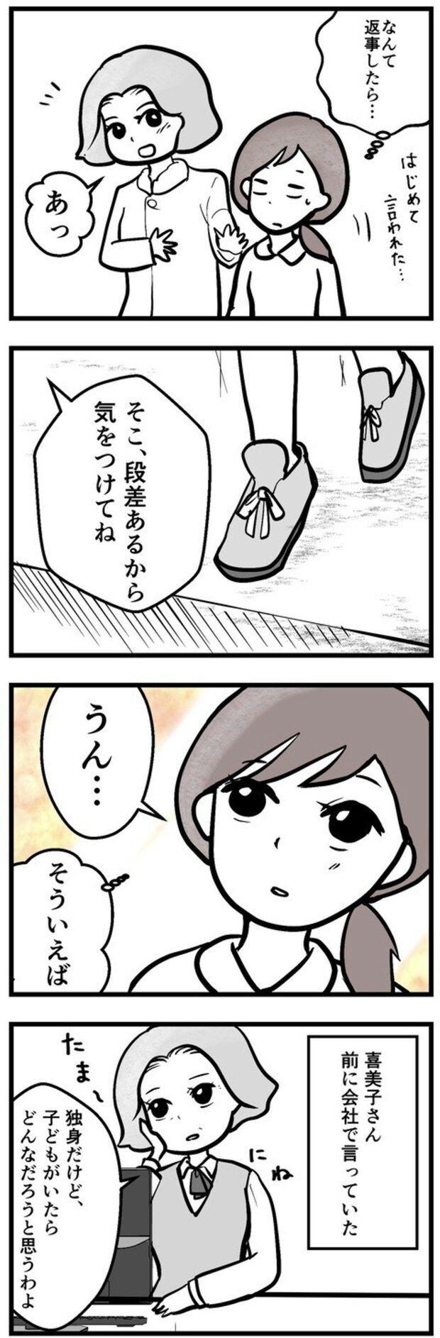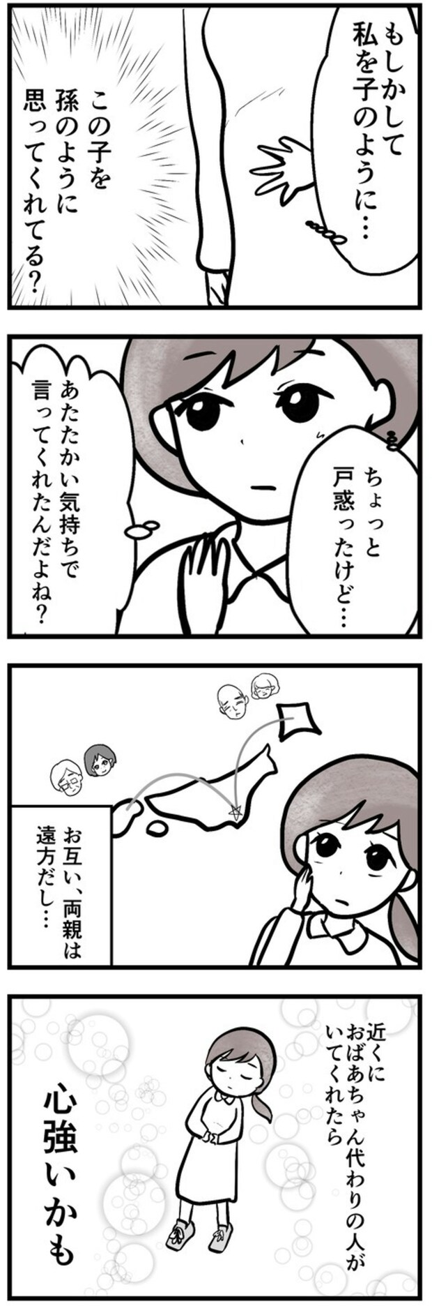 子育ても人付き合いも、「こうあるべき」にとらわれず、自分のペースで育てていけばいい。そんな風に考えさせられる、まゆさんと喜美子さんの物語でした。