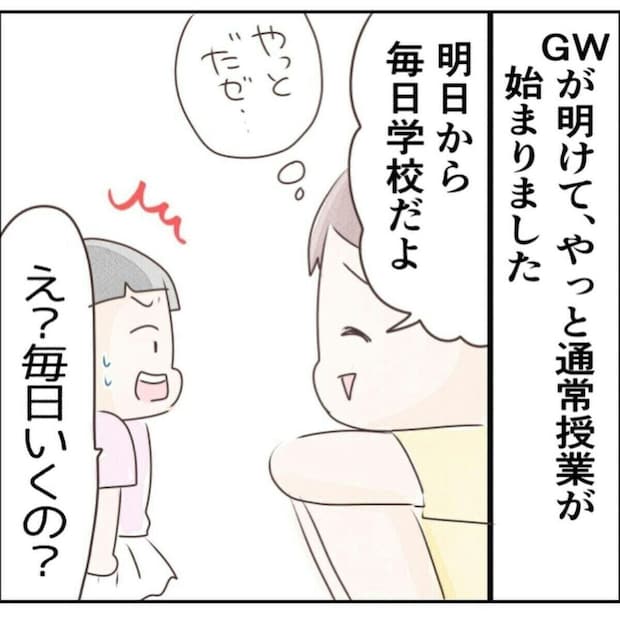 ようみん(@mamayoubi)さんの娘、ぷっちょちゃんは新一年生です。コロナ禍ということもあり、分散登校などの変則的な登下校が続きました。ゴールデンウイークが明け、ようやく通常授業となりました。