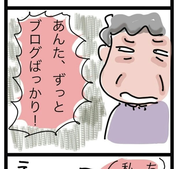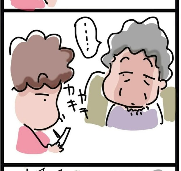 おかんさんは、母親のそばでブログを書いていました。すると、母親は「もっと自分のことを気にかけてほしい」とすねてしまいます。