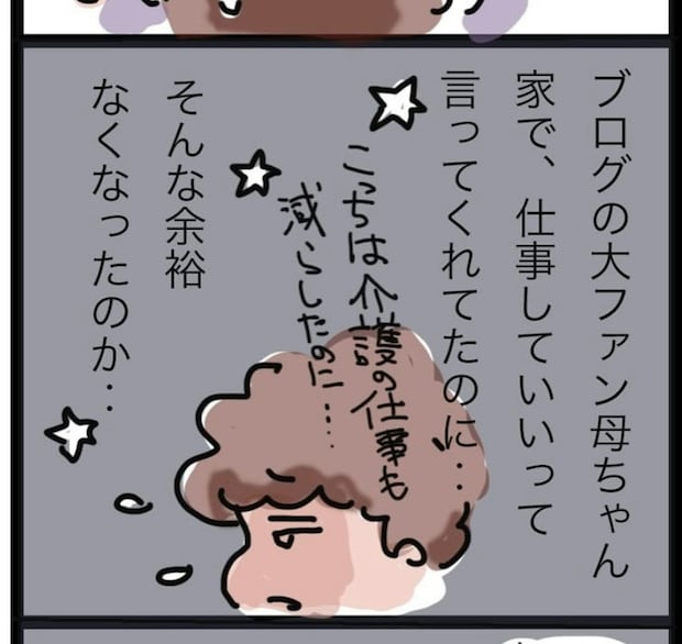 それでも最終的に、おかんさんは病気が進行し、心身ともにつらくなった母親が甘えられる相手は自分しかいないと感じ、最後まで介護を続ける決意を固めます。