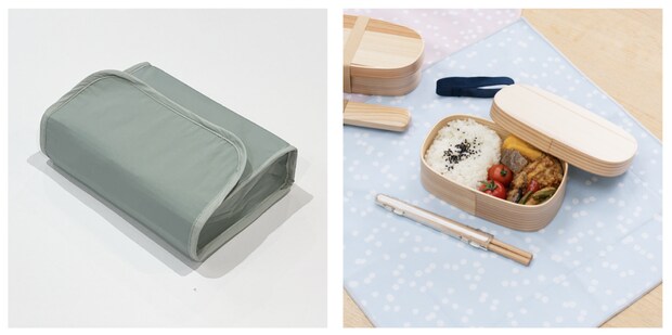 たためる保冷ランチバッグ(税込1,089円)×【山中塗】食洗機対応レンジ天然木わっぱ(税込4,070円)