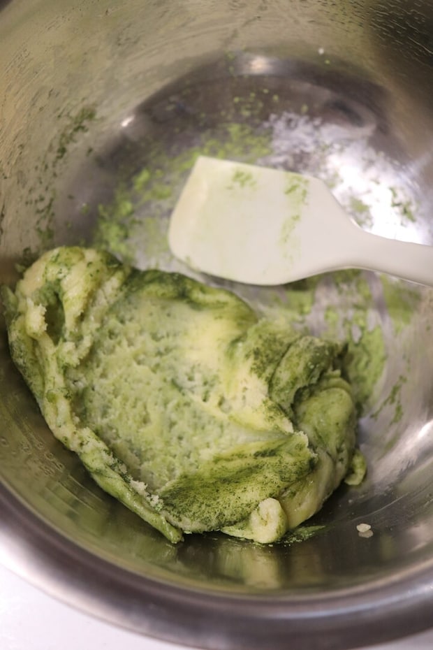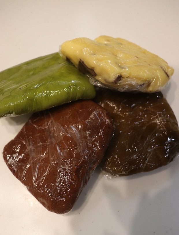 ⑤出来上がった生地はそれぞれラップに包んで冷蔵庫で30分寝かせます。