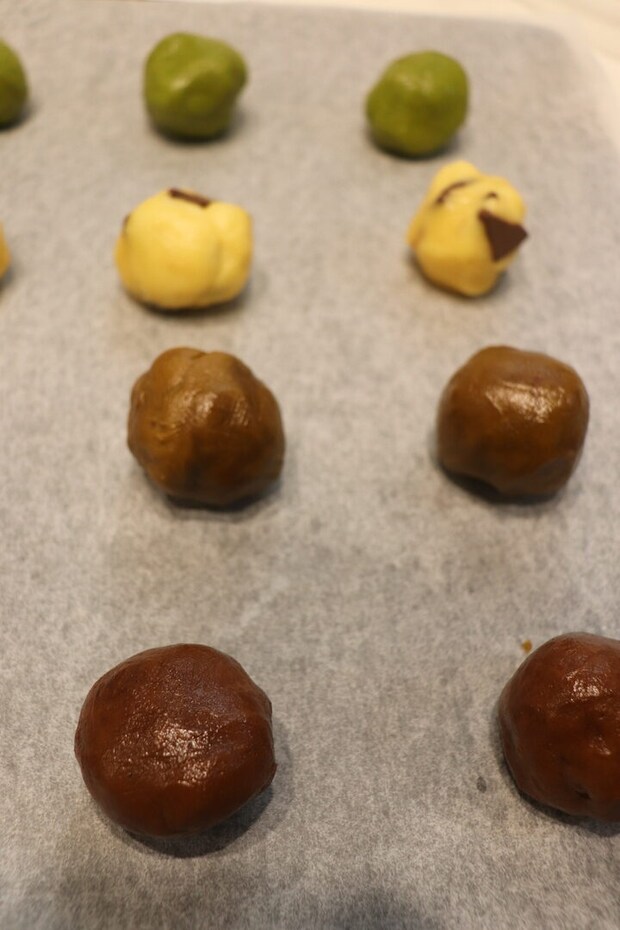 今回は、抹茶、ココア、ほうじ茶、チョコチップの4つにしました♡
