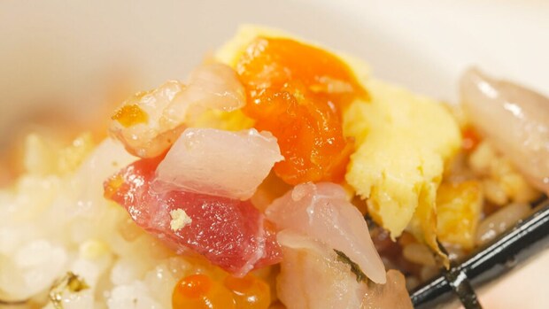 一口で魚の旨味が押し寄せ、卵の甘さがそれを引き立てています。